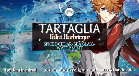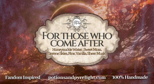 Welcome to Potions & Pyrelight Candle Co., where we bring your favorite fictional characters, places, and memories to life - in candle form! We use super high quality, clean burning and vegan cruelty free wax, phthalate free luxurious fragrance oil combinations we blend ourselves, and we offer crackling wooden wicks with all of our candles for no extra charge because we believe that even a small flame can and should feel like your own personal campfire.