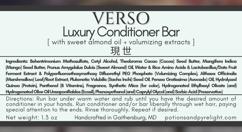 Verso's hair conditioner bar contains specific extracts to add volume and definition to your normal or textured hair. Made with a hefty dose of sweet almond oil, which contains vitamin E and is amazing for adding moisture to dry, dull hair, Verso also contains a volumizing blend made of natural plant amino acids & extracts (date palm, rice aminos, marshmallow leaf & root), to maximize volume and curl retention for expeditioners who want every day to be a good hair day.